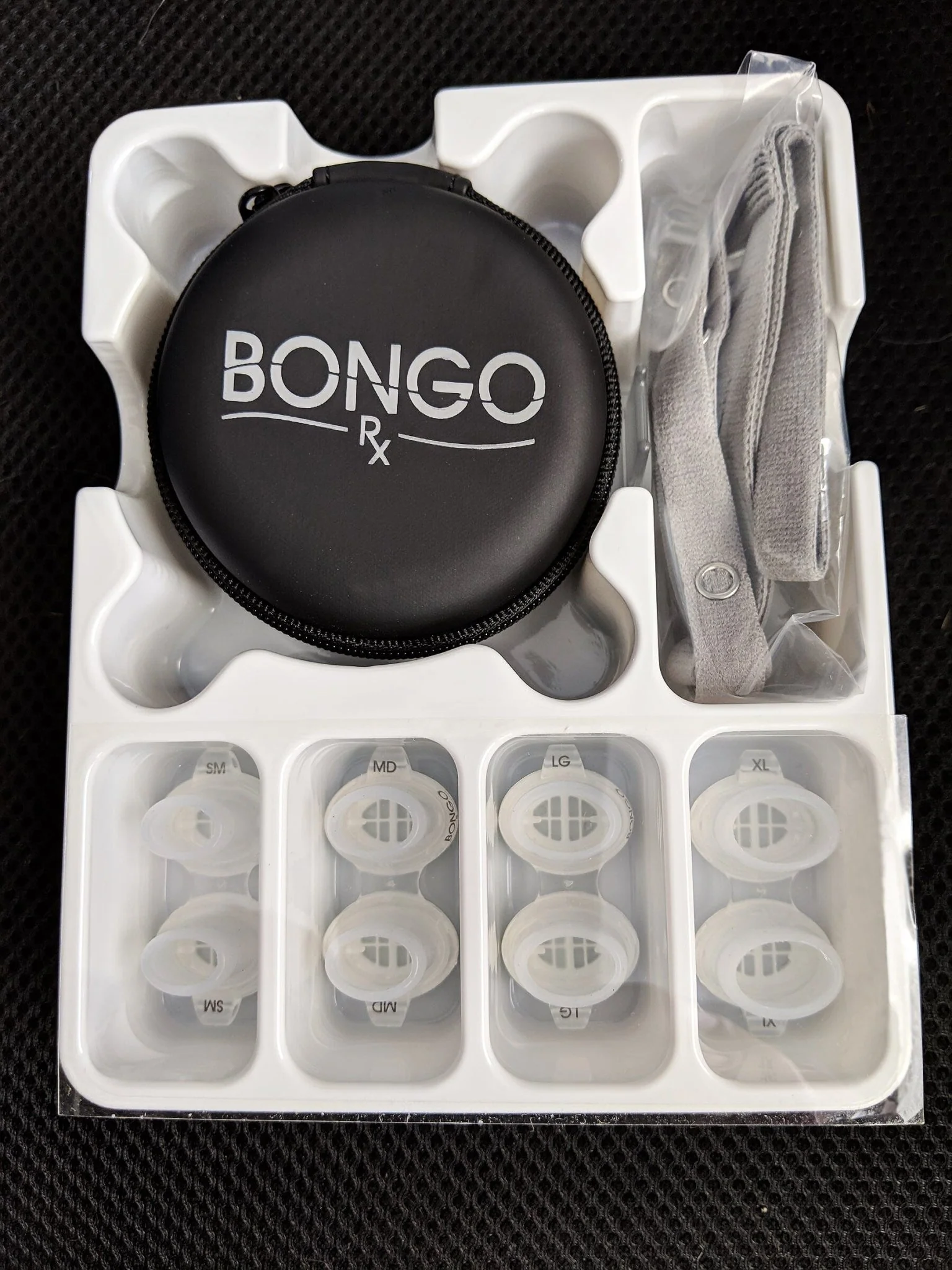 - The Starter Kit includes all 4 sizes of the Bongo device so patients can find their perfect fit. as well as headgear, drying stand and travel case